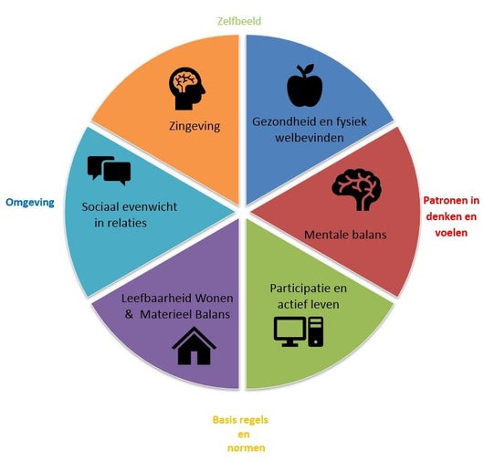 Jouw expert begeleider staat je bij bij de uitdagingen die je ervaart in je dagelijks leven. MenzSamen gaat er vanuit dat jouw kwaliteit van Leven en mate van welbevinden en zelfsturing bepaald wordt door het gemis die je ervaart in je huidige situatie in relatie tot je gewenste situatie over de leefdomeinen zoals in beeld gebracht in de MenzSamen Cirkel van Welbevinden en Kwaliteit van Leven. De verschillende leefdomeinen staan met elkaar in verbinding en kunnen dan ook niet los van elkaar gezien worden. Samen met je expert begeleider in kaart brengen wat voor jou nodig is, en wat je zelf kan doen of wat nodig is om regie te krijgen en te behouden richting jouw gewenste realistische toekomst.